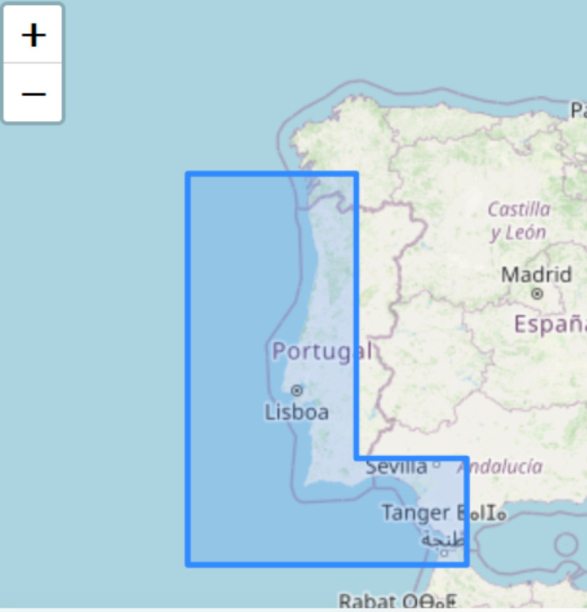 C5 Cabo Finisterre naar Cabo Silleiro – Vigo 1: 200.000 , C6 Cabo Silleiro naar Porto 1: 200.000 , C7 Porto naar Cabo Mondego – Aveiro 1: 200.000 , C8 Cabo Mondego naar Cabo Carvoeiro 1.: 200.000 , C9 Cabo Carvoeiro naar Lissabon 1: 200.000 , C10 Lissabon naar Cabo Sines – Vila Nova 1: 200.000 , C11 Vila Nova naar Cabo Vicente 1: 200.000 , C12 Cabo Vicente naar Quarteira 1: 200.000 , C13 Quarteira naar Pta. Umbrië – Huelva 1: 200.000 , C14 Pta.Umbrië naar Cabo Roche 1: 200.000 , C15 Cabo Roche naar Gibraltar 1: 200.000