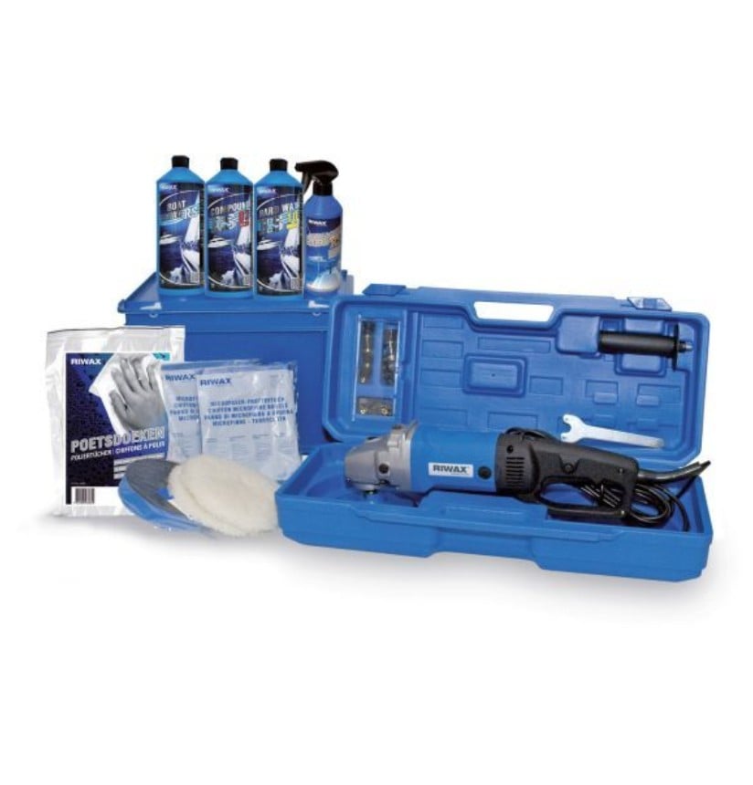 Met dit complete, meest uitgebreide glanspakket van Riwax ben je klaar om je boot te laten stralen. Inclusief de krachtige 1300 Watt Riwax Polijstmachine ben je ook klaar voor de grotere oppervlaktes van de romp. Gebruik het stappenplan van Riwax (meegeleverd in het pakket) en kom gerust langs in onze winkel voor nog meer praktische poetstips.