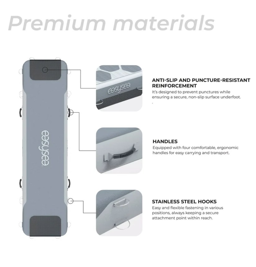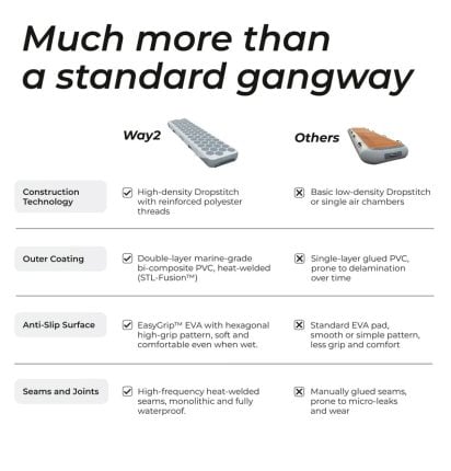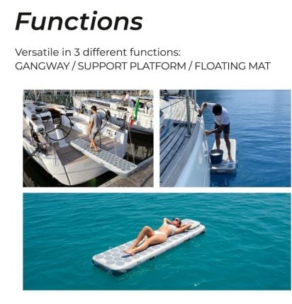 De Easysea Way2 is niet zomaar een loopplank; het is een goed doordachte 4-in-1 oplossing ontwikkeld door zeilers voor zeilers. Vergeet zware, onhandige aluminium loopplanken die de boot beschadigen. De Way2 biedt een lichtgewicht, maar sterk alternatief die in een handomdraai klaar is voor gebruik. En je daarnaast net zo makkelijk inzet als SUP, werkplatform en ligbed!