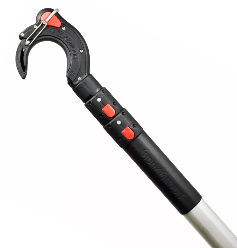 Optimaliseer je aanmeren met eenvoud en veiligheid. De Hook & Moor boothaak is een innovatieve 2‑in‑1 oplossing: gebruik hem als traditionele pikhaak óf activeer de gepatenteerde mechaniek om je eigen afmeerlijn moeiteloos door een ring te trekken, zonder te hoeven uitstappen of hulp van anderen.