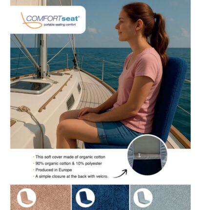 Geef je Comfort Seat Regular een frisse look én langdurige bescherming met deze luxe badstof hoes. Gemaakt van zacht & ademend organisch katoen, perfect voor zonnige dagen aan boord of op strand of camping. Makkelijk verwisselbaar en wasbaar. Verkrijgbaar in Blauw, grijs en beige – altijd een kleur die past bij jouw stijl. Beschermt tegen vuil, slijtage en zonnebrand, en zit net zo comfortabel als je gewend bent. Een slimme upgrade voor je favoriete stoel!