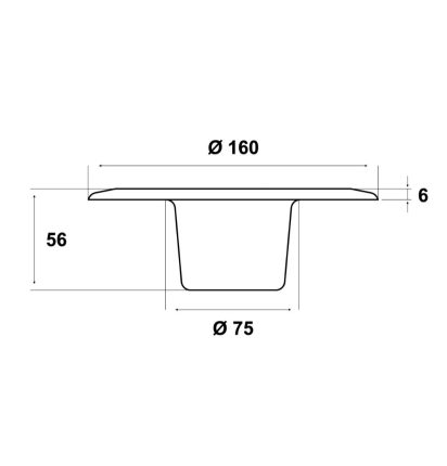 Deze elegant ontworpen vloerbevestiging heeft een diameter van 160 mm en biedt een opmerkelijk discrete installatie, met slechts 6 mm zichtbaar boven het oppervlak. Het slim verzonken gedeelte is 54 mm diep, aangevuld met een gatdiameter van 75 mm, wat zorgt voor een perfect opgeruimde en geïntegreerde uitstraling.