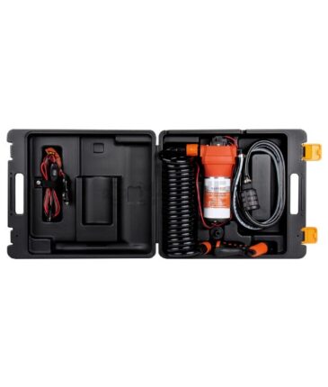 Deze draagbare hogedrukreiniger/dekwaspomp is met zijn krachtige waterstraal perfect om de boot af te spuiten zonder drinkwater te verspillen. Geleverd in een stevige casing met alle benodigde accessoires. Hoe werkt het Open je koffer en hang de waterinlaatslang in het water naast de boot. De lengte van de slang is 2 meter en deze is voorzien van een filter. Sluit vervolgens de stroomkabel aan op een 12V punt (kabel is voorzien van sigarettenplug), de kabel is 2,5 meter lang. Je hebt dus geen walstroom nodig om de pomp te gebruiken. Start de pomp en je kunt aan de slag! De spuitslang is voorzien van een instelbaar pistool en de slang zelf is 6,5 meter lang. De installatie bevat een ingebouwde terugslagklep. Deze terugslagklep verzekerd dat het verpompte water niet meer terug kan stromen. Met de draagbare hogedrukreiniger en dekwaspomp pompt u gemakkelijk tot 17 liter water per minuut, en 1.020 liter per uur. De pomp is ideaal voor gebruik aan boord, maar neem je ook eenvoudig mee in de auto.