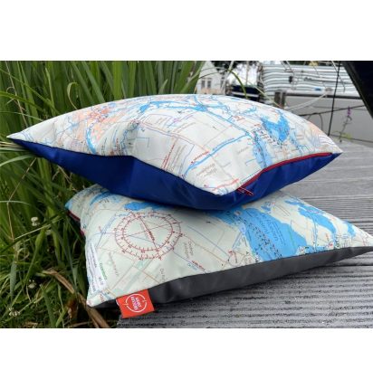 De kussens zijn voorzien van haarscherpe prints van ANWB waterkaarten en de officiële zeekaarten van de Hydrografische Dienst. Dankzij de hoogwaardige afwerking zijn ze niet alleen een lust voor het oog, maar ook bestand tegen het leven op het water. De stoere rode rits geeft een nautisch accent aan de diepe ‘Royal Blue’ achterzijde.