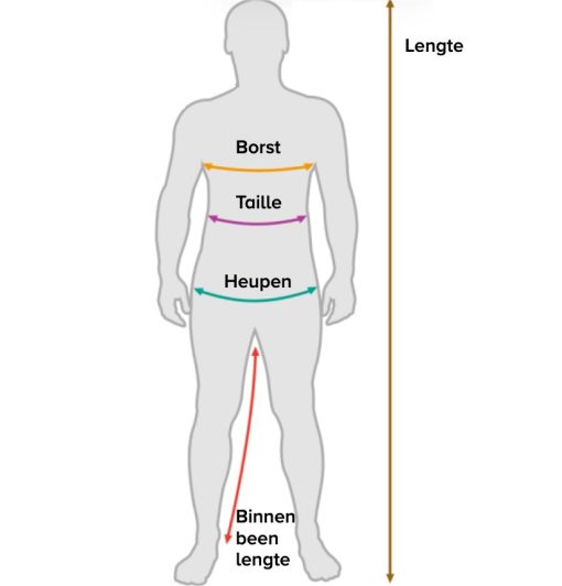 Maat Borst (cm) Taille (cm) Heup (cm) Mouwlengte (CB) Lengte