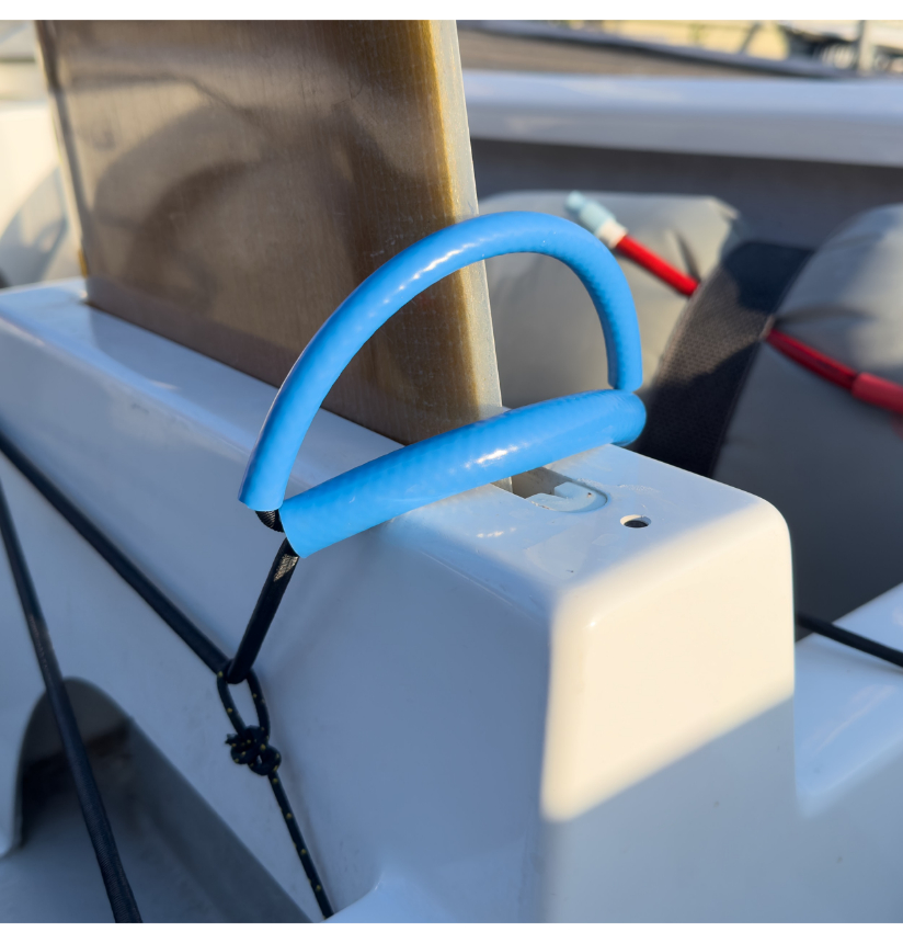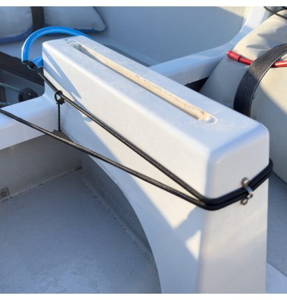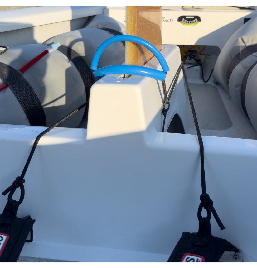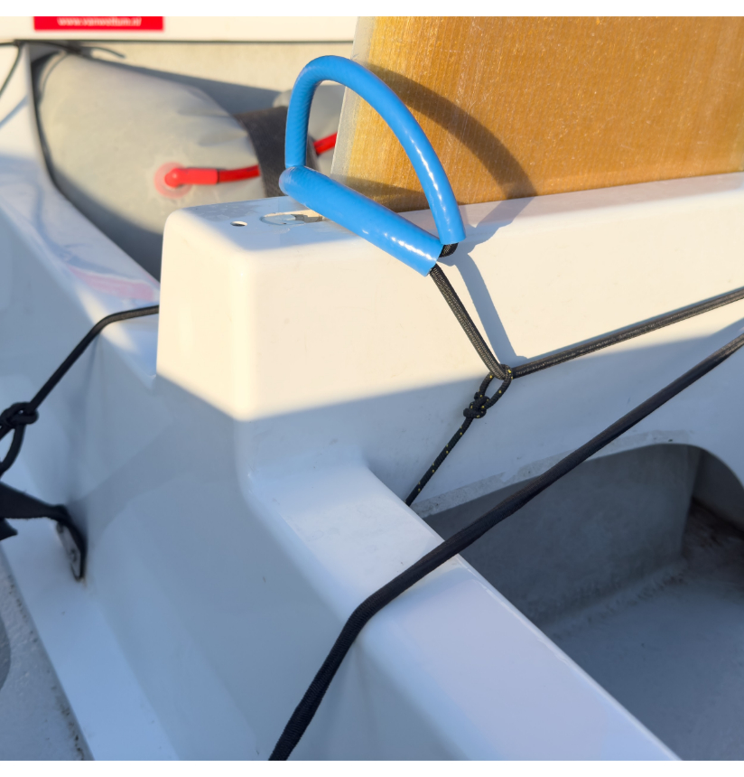 De Optimist Daggerboard Bungy van Optiparts is gemaakt van 6 mm dinghy shockcord met rood pvc handvat om het Optimist zwaard op zijn plaats te houden. Wordt geleverd in een complete set met twee maten slang, shockcord en 3 mm Vectran touw om het shockcord op zijn plaats te houden.