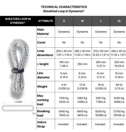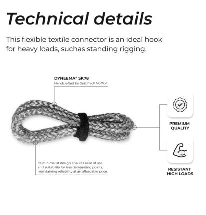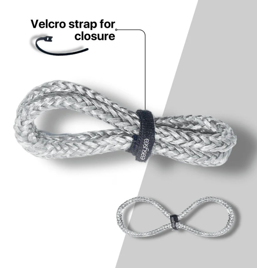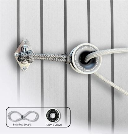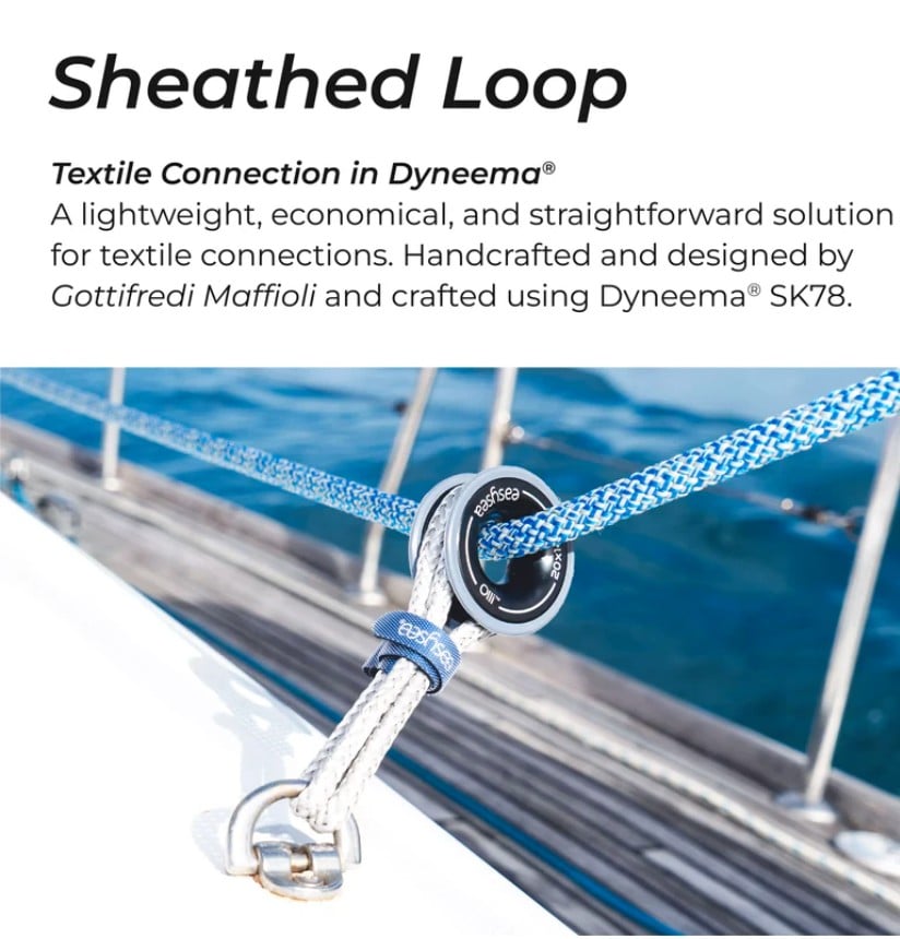 De flexibele EASYSEA sheathed loop is ideaal voor zware belasting, zoals het staand want of bij statische belasting op blokken. Supersterk en handgemaakt in Italie gemaakt van 100% Dyneema van Gottifredi Maffioli. Ontworpen voor bijvoorbeeld de EASYSEA Olli low friction ringen. Met de handige meegeleverde klittenbandsluiting kun je de sheathed loop op meerdere manieren toepassen en op maat klemmen.