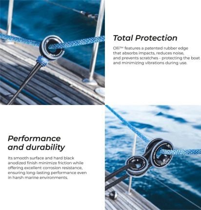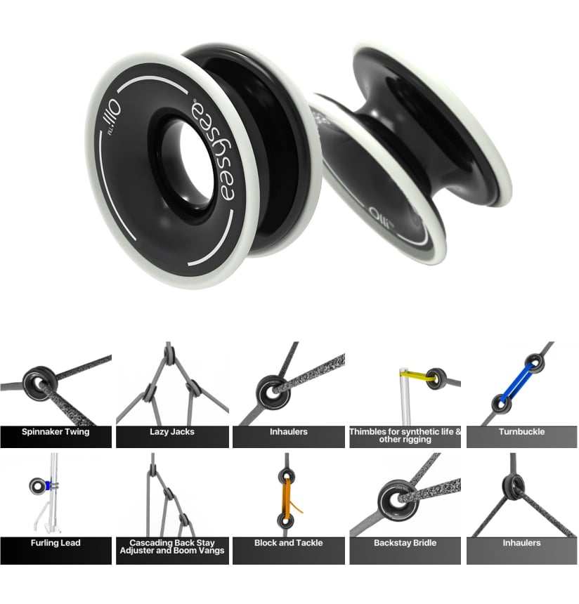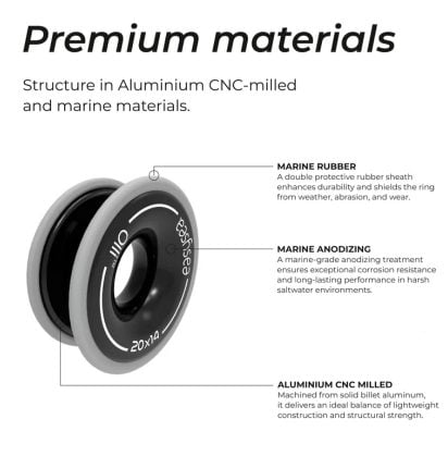 De EASYSEA Olli low friction ringen hebben niet voor niets een Deck Equipment DAME Design Award nominatie ontvangen. Olli wordt in Italië gemaakt van massief aluminium en bewerkt met een CNC-machine voor een mix van afwerkingskwaliteit en technische robuustheid. De anti-corrosiebehandeling van het oppervlak van Olli is verkregen door anodiseren. Volledig bestand tegen maritieme weersinvloeden. Verkrijgbaar in verschillende maten.