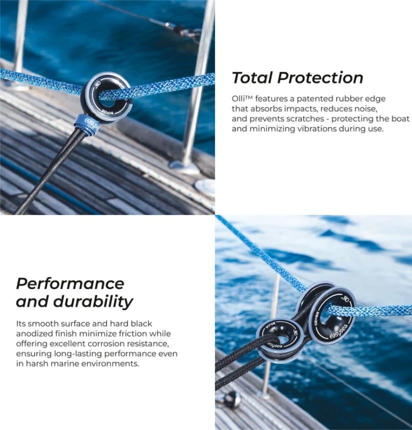 Maak kennis met EASYSEA Olli, de eerste en enige anti-shock low friction ringen met dubbele bescherming om het dek van de boot of luiken en patrijspoorten te beschermen tegen schade door stoten en krassen. De Olli voorkomt ook hinderlijk geluid van wind- en golftrillingen.